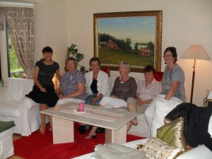 Träff med gymnasiegänget från Värnamo: jag, Birgitta, Anita, Ann-Sofie, Agneta, Elisabeth